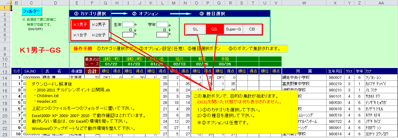 FISやSAJのランキングデータなどを配布しております。